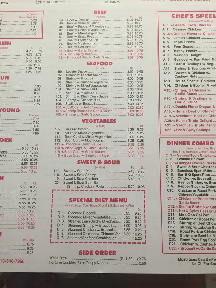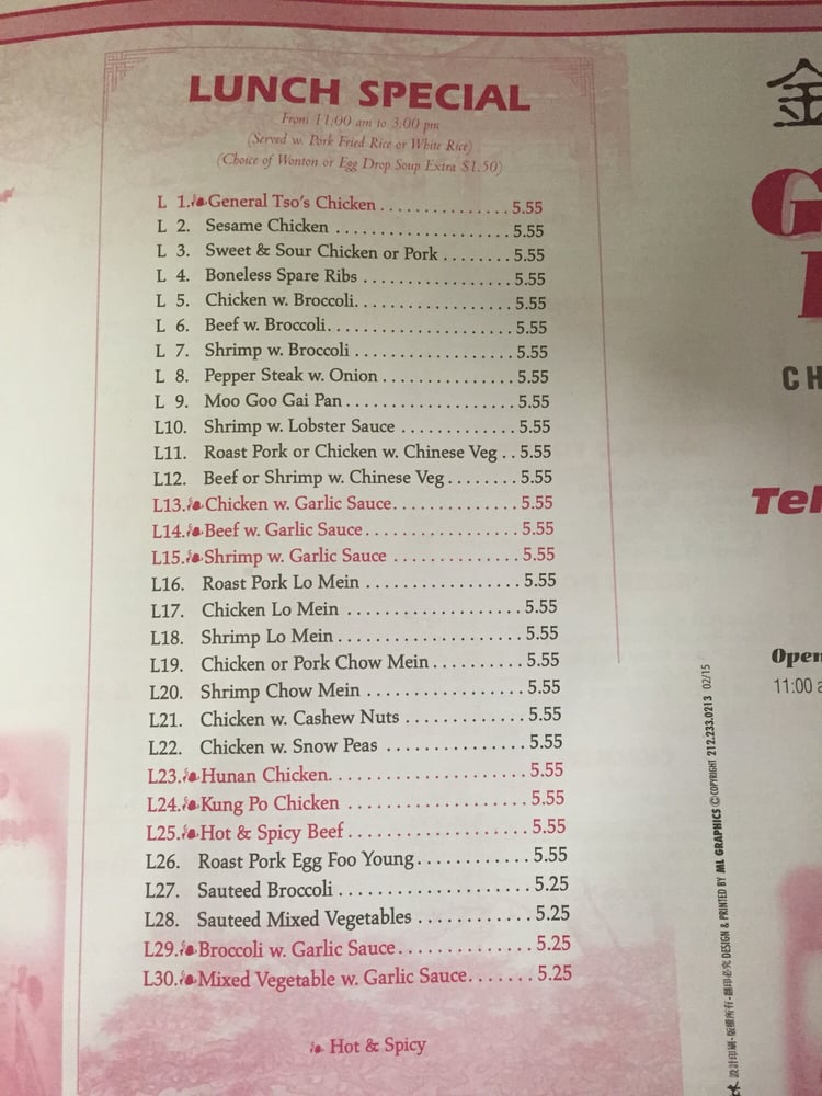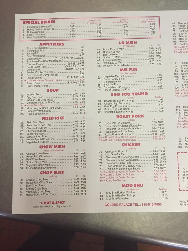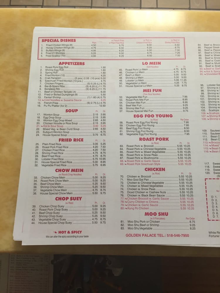 Golden Palace Chinese Restaurant Menu